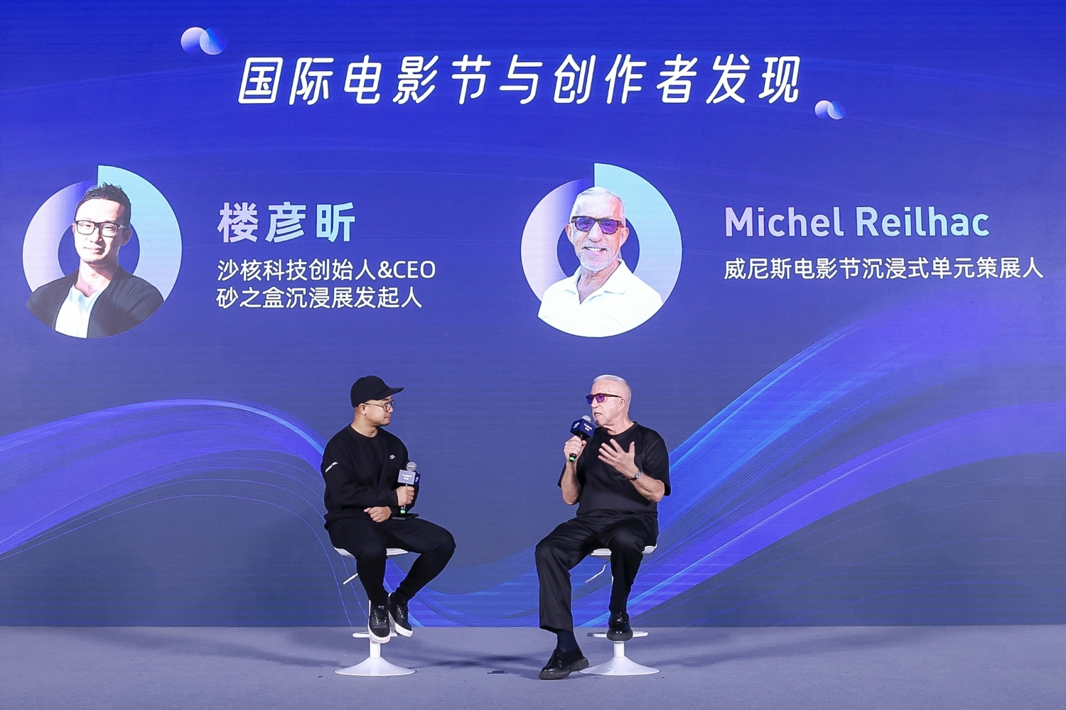 沙核科技创始人兼CEO、砂之盒沉浸展发起人楼彦昕与威尼斯电影节沉浸式单元策展人Michel Reilhac
