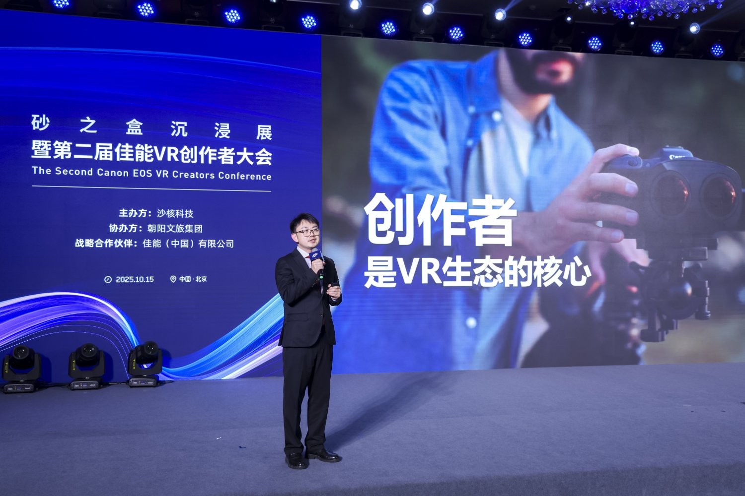 2025年10月15日,佳能*1与沙核科技携手举办的2025砂之盒沉浸展暨第二届佳能VR创作者大会在北京开幕。本次VR(Virtual Reality,虚拟现实技术)创作者大会以“人人可创作,处处皆沉浸”为主题,多维度解析VR行业发展趋势,聚焦沉浸式实拍影像的落地案例,深入剖析优秀作品的创作思路,旨在挖掘沉浸式实拍影像内容的商业潜力,展望沉浸式影像的未来发展趋势与无限可能。本届VR创作者大会依托的砂之盒沉浸展是具备全球影响力的年度沉浸娱乐盛会。作为战略合作伙伴,佳能携EOS虚拟现实解决方案亮相10月15日-16日举办的“2025砂之盒沉浸展·未来叙事峰会”。同时,佳能“EOS虚拟现实系统展区”自即日起登陆“2025砂之盒沉浸展·未来娱乐展映”主场,在为期一个月的展期内为消费者带来沉浸式VR影像体验。
