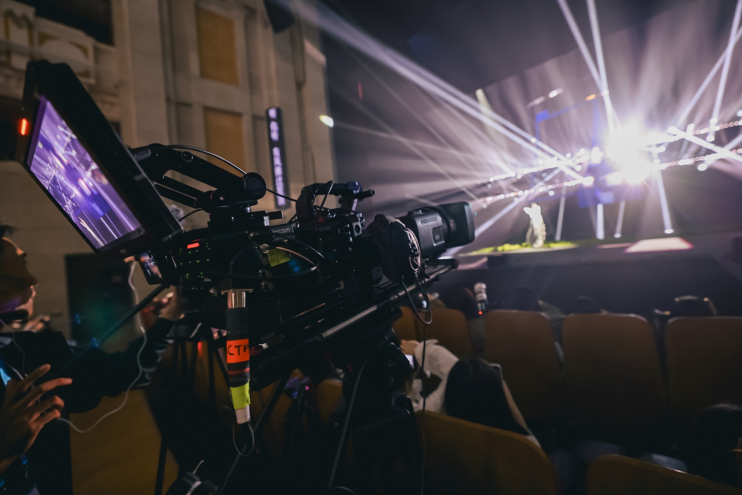 整场音乐会共部署了七个讯道化机位。主机位位于中央观众席后方,负责整体构图与舞台全景;两侧机位聚焦演员与舞者的情绪特写;轨道机位沿舞台前沿移动,用于捕捉节奏变化;摇臂机位提供俯拍与空间透视;另有观众区与远距长焦机位负责氛围与纵深的捕捉。