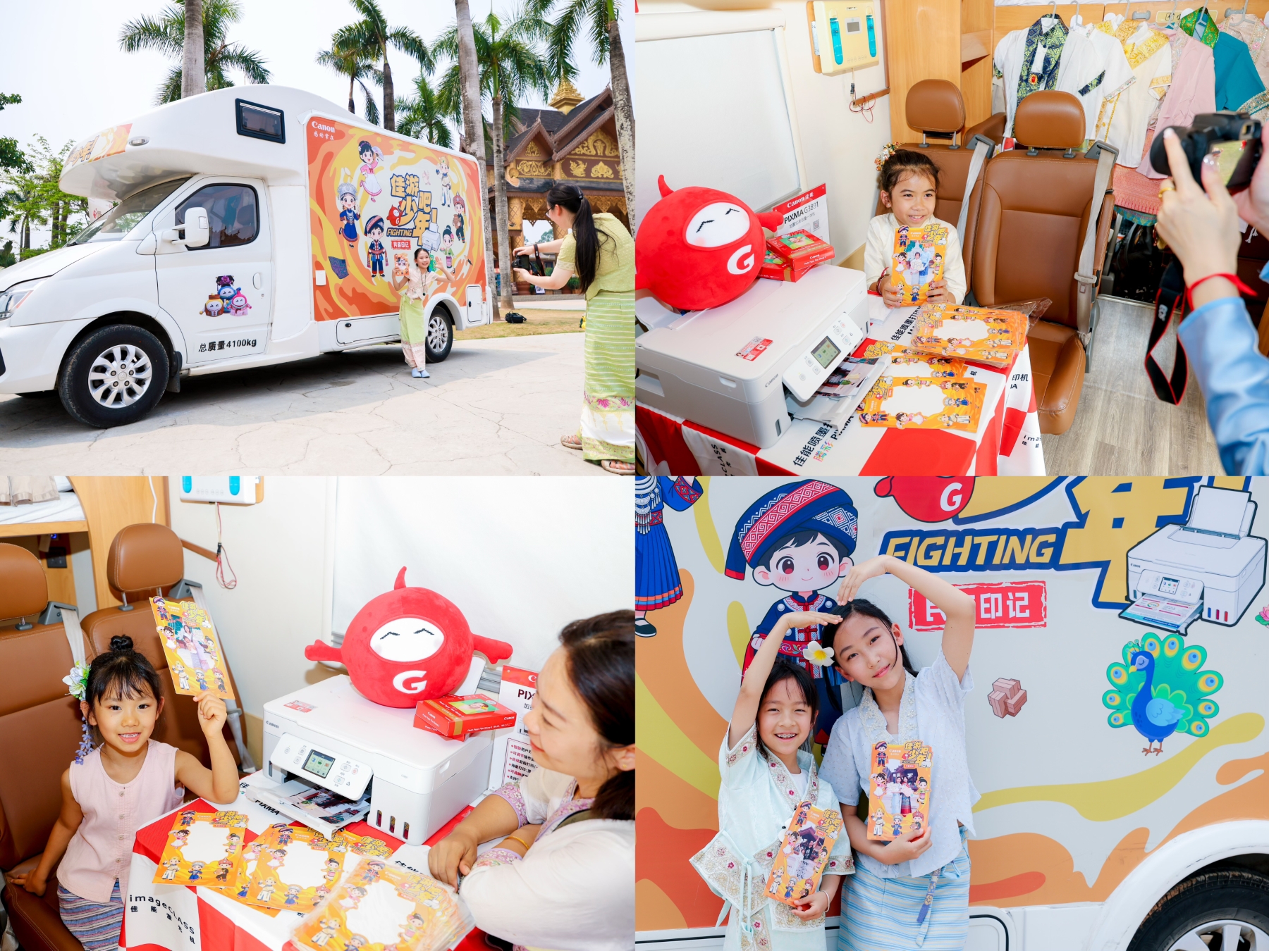 活动期间,现场特别设置的佳能小G灵焕彩车互动体验区成为热门打卡点。亲子家庭在车上换装民族传统服饰后,即可现场使用佳能EOS R50进行拍摄,并通过佳能小G灵G3891打印照片留念,在社交平台打卡。佳能小G灵G3891作为核心体验产品,在活动中成为亲子家庭记录旅行、创意表达的重要工具,助力青少年沉浸式感受民族文化魅力。