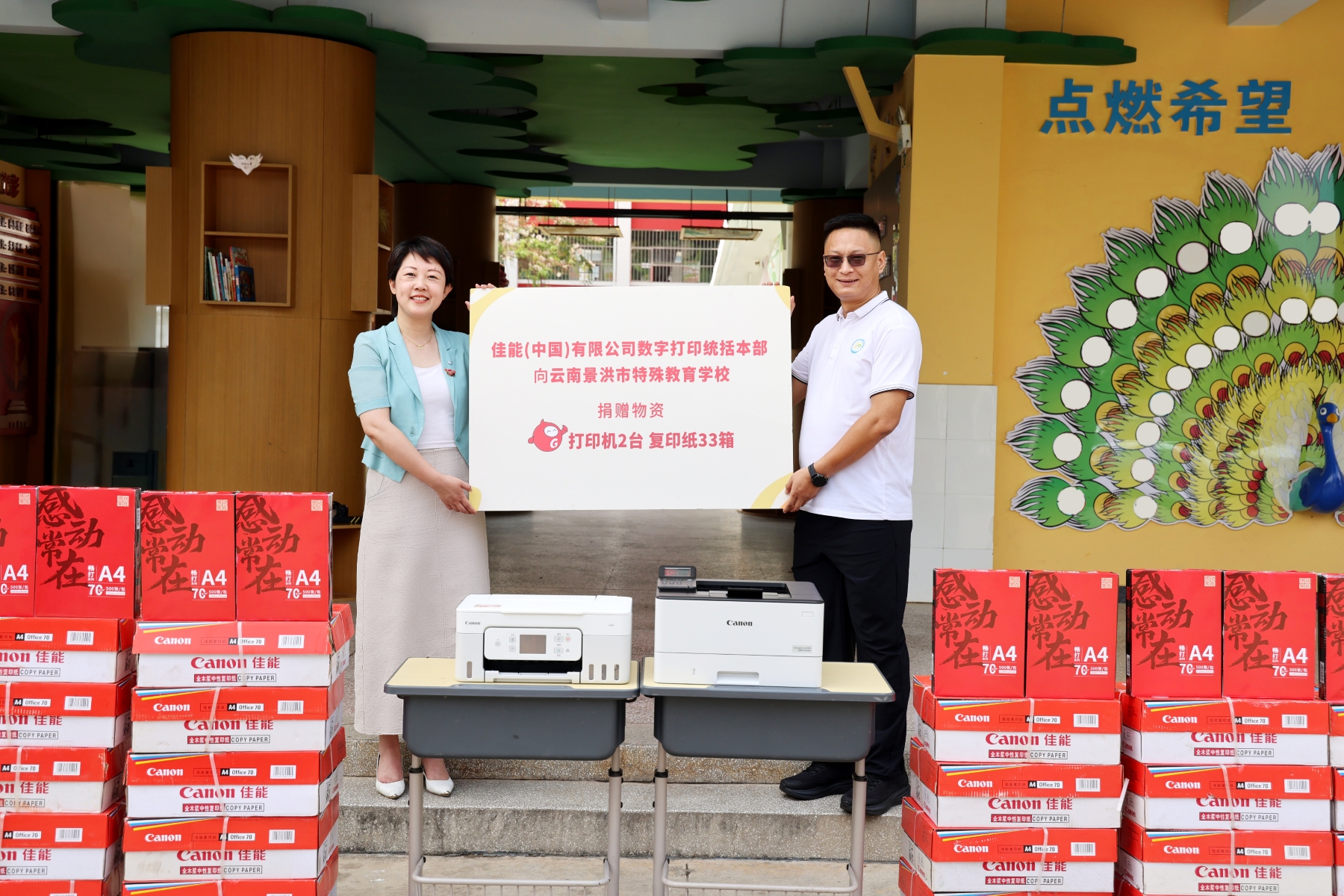 佳能捐赠的G3891、LBP243dw打印机及代表企业文化的感动常在复印纸,