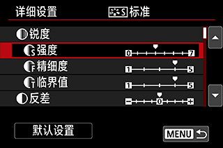 “精致细节”详细设置中的“精细度”和“临界值”是通过规定进行锐度处理的像素单位(范围)来调整锐化效果的参数。将“精细度”设小,图像中进行锐化处理的线条就越细,图像感觉也越精致。另外,通过将“临界值”设小,可以强调低对比度部分的轮廓。适合用于风光拍摄等注重展现质感的领域。