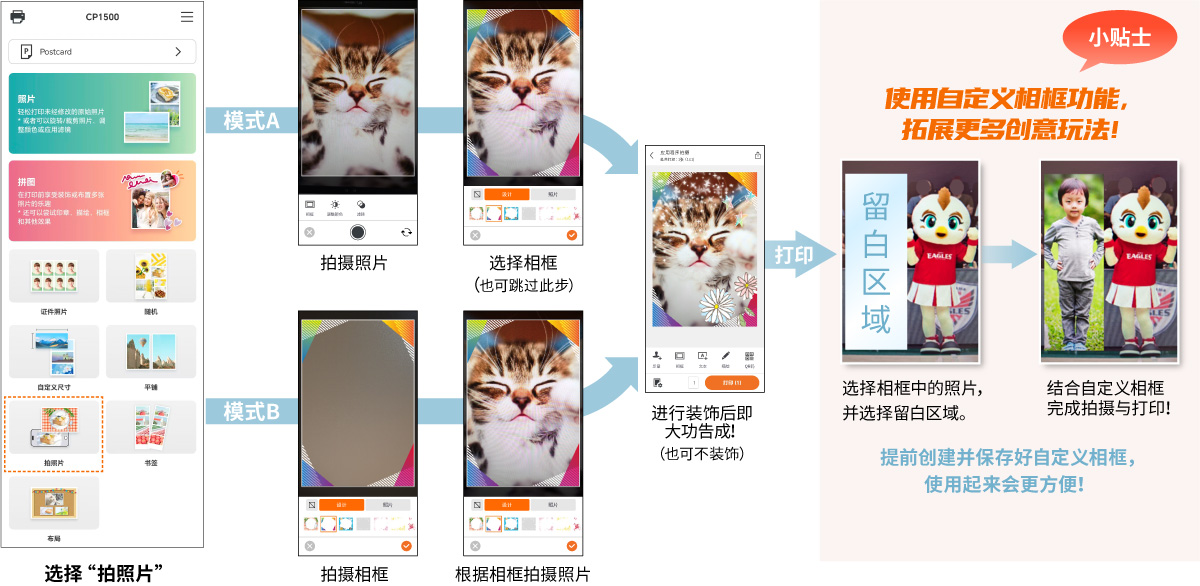 只需选择照片,即可将其合成至相框中,让打印变得更加轻松随意。