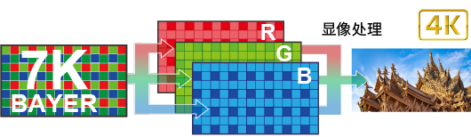 7K的高清晰度不仅实现了丰富的视频表现力,还实现了对7K RAW素材进行4K裁切等灵活自由的工作流程。在XF-HEVC S、XF-AVC S格式下录制4K视频时,可通过对其进行超采样实现4K 4:2:2 10 bit的高画质录制,获得更为清晰的视频表现力。