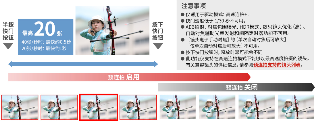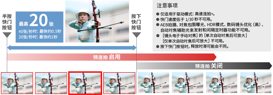 *1 连拍速度可能因被摄体、拍摄条件、摄影机设置、使用的电池类型及状态、电池手柄的使用情况、使用的镜头等因素而降低。