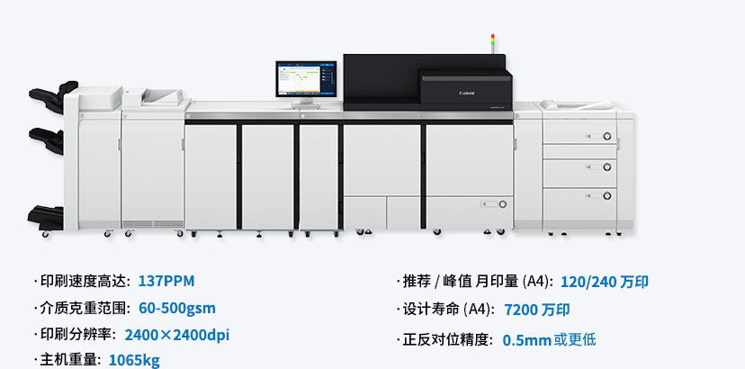 佳能新推出的imagePRESS V1350是一款速度高达137PPM(A4)的重型印刷设备,这款彩色生产机器追求高耐久性、高可靠性和高质量。它继承了前一代机型imagePRESS C10010VP的高图像质量,并大幅提升了产能和使用寿命,为印刷服务商提供高容量和高质量的生产,通过长时间工作实现持续的高生产率和高产出。