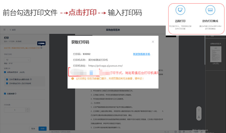 日常办公、电子合同、防伪码打印、自定义水印、二维码打印、骑缝章打印等文件的本地和远程打印输出。