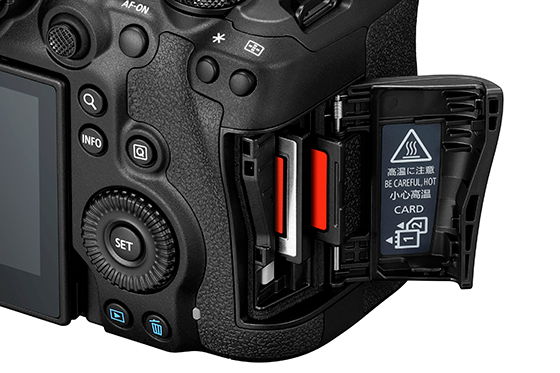 约40张/秒的高速连拍需要存储卡具备高速写入性能才能短时间记录下所拍摄到的大量图像数据。EOS R6 Mark III配备双卡槽,支持具备高速读写性能的CFexpress存储卡及SD存储卡。强化的缓存及DIGIC X图像处理器的高速数据处理性能,在JPEG的记录模式下,电子快门下最大连拍张数约330张,机械/电子前帘快门下能超过1000张。