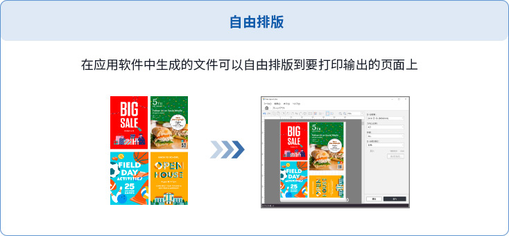 打简单便捷的操作就能将Office、Photoshop等应用软件中生成的文件进行自由排版,这使得海报设计变得更加容易。