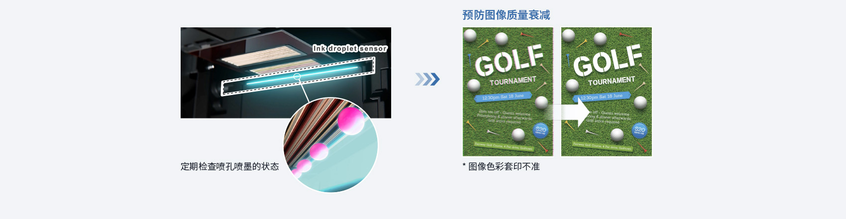 新的喷墨检测系统会定期检查喷孔喷墨状态,自动调整墨水的着墨位置准确性,以保证打印图像的品质。