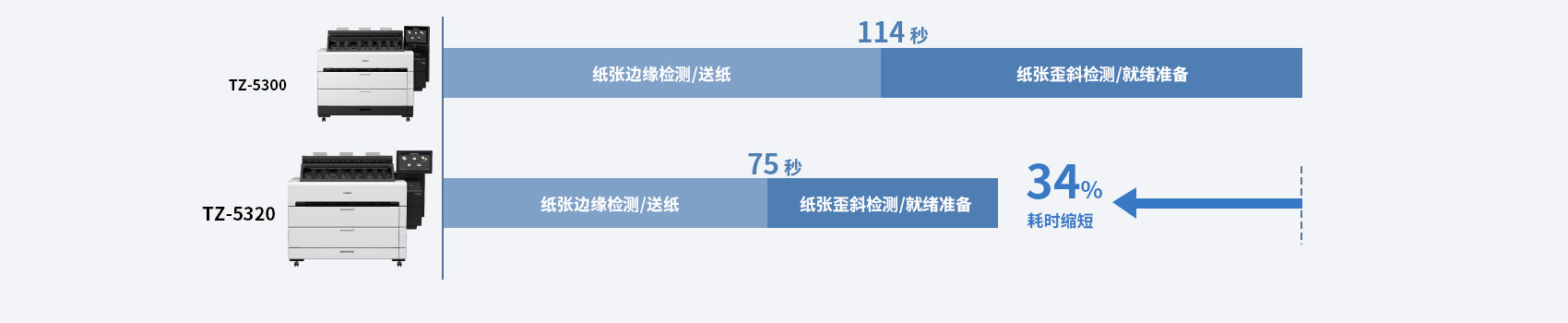 纸张输送和检测顺序优化,将安装耗时缩短34%*。