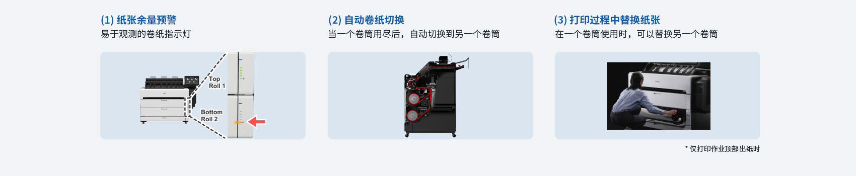 设备前端指示灯与卷筒自动切换功能的组合,可以有效避免在连续输出时停机操作的情况。