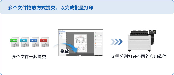 不同格式的打印文件拖放方式进行提交,一并输出打印。