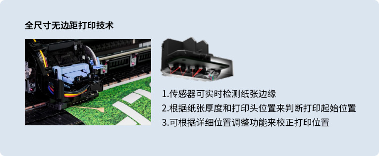 利用多功能传感器检测纸张边缘,在纸张范围内输出,让边距最小化;