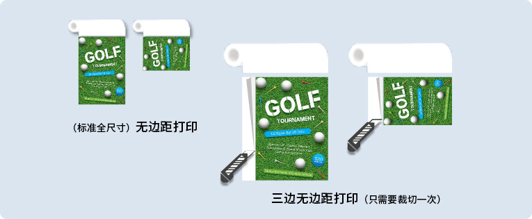 两种类型的无边距打印方式,可在一种规格的卷纸上实现不同的无边距输出效果。