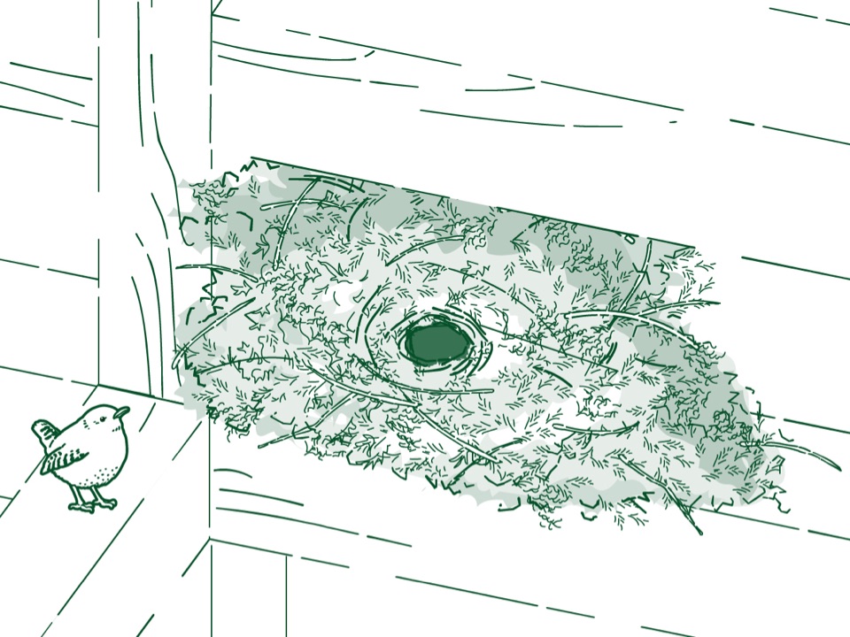 鹪鹩会大量使用苔藓作为筑巢材料。鹪鹩体型小巧,只有麻雀的一半大,但它们的巢却非常大,直径超过20厘米。这样精致的大巢,让人不禁感叹“这么小的鸟竟然能筑出如此大的巢”。