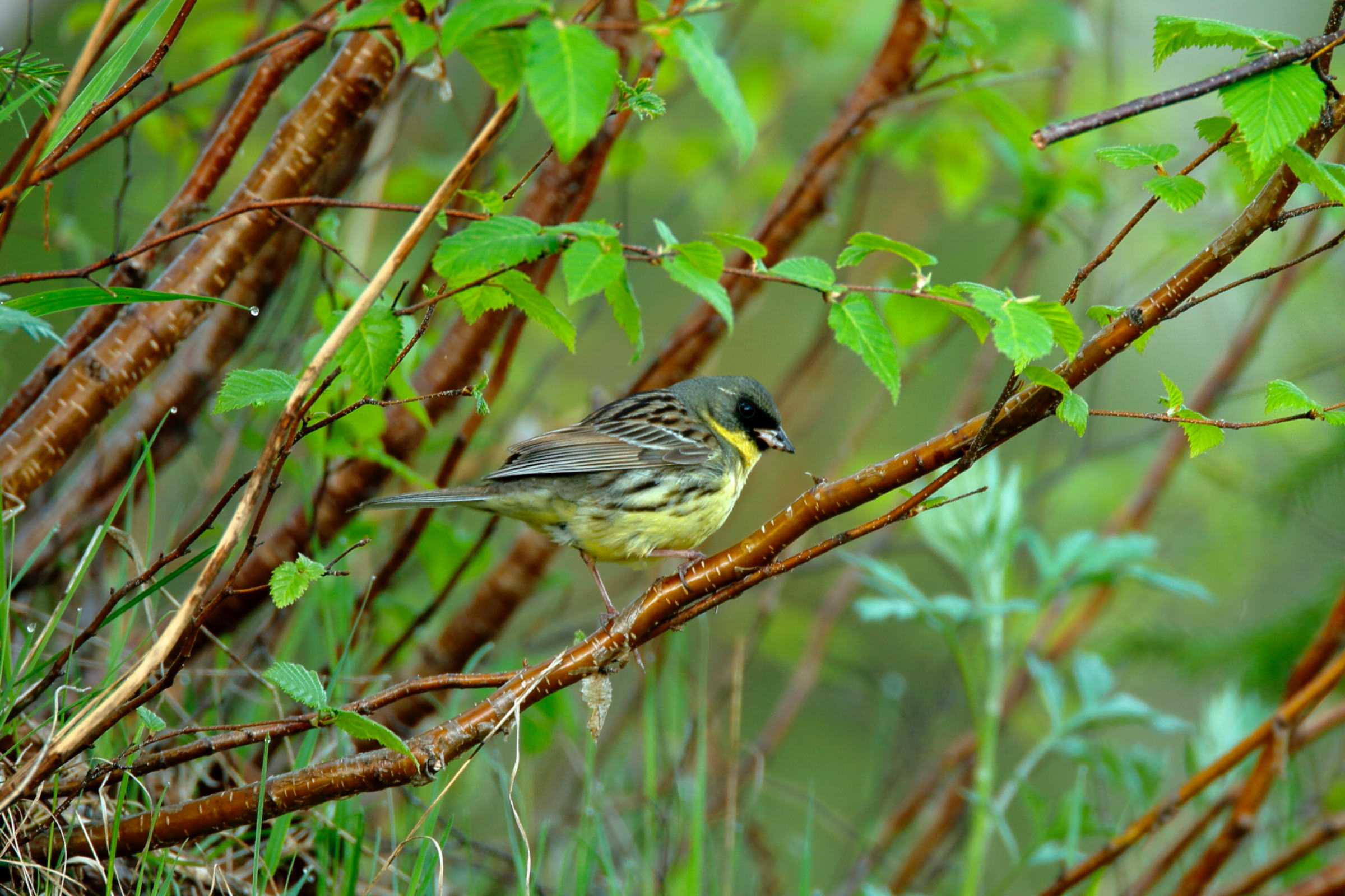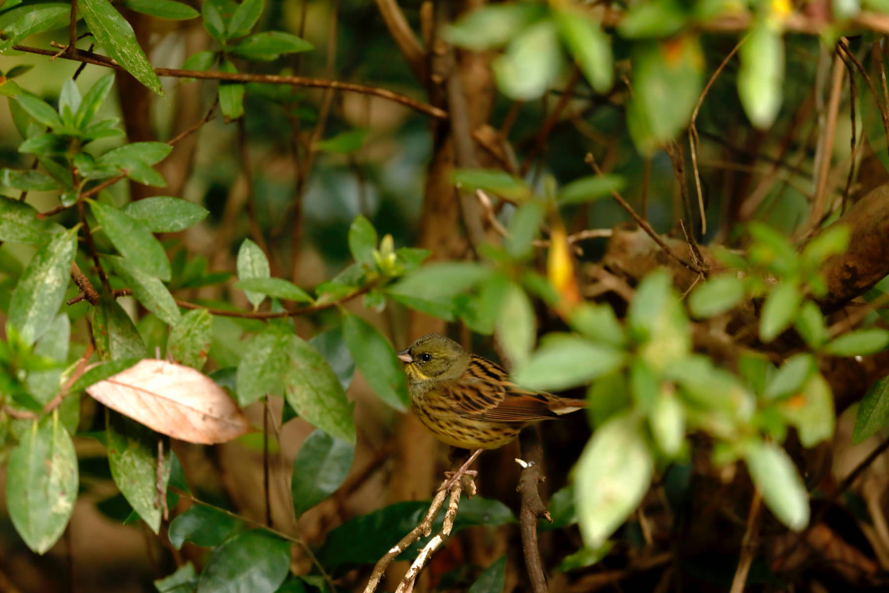 它们虽常光顾庭院与公园,却和日本树莺一样难以寻觅,因此常被人忽略。若从灌木丛中传出比麻雀“啾啾”声更低沉、更浑厚的“啾咕 — 啾咕 —”声,那是日本树莺;若听到尖锐纤细的“吱 — 吱 —”声,则大概率是灰头鹀。田鹀的鸣叫声与之相似,但当它从灌木丛中飞出躲避时,便可与灰头鹀区分开。灰头鹀与日本树莺遇到危险时,常会躲进灌木丛深处,避免被发现。