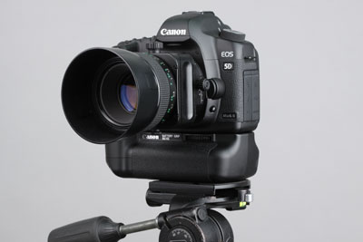 镜头安装完成后,将相机固定在三脚架上。此时要确认偏移和倾角的操作旋钮是否碰到云台。为了方便操作,要仔细研究相机安装在云台上的角度,还要尝试使用TS-E镜头三脚架适配器或电池盒兼手柄 ,以使镜头下方有足够的空间。