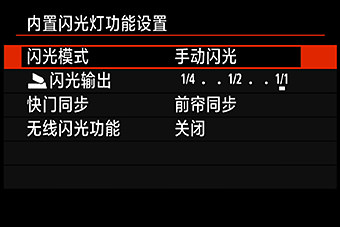 EOS相机的内置闪光灯,除可以自动闪光外,还可以进行多种闪光设置。进入拍摄菜单中的闪光灯控制项,可以进行测光方式、闪光测光方式的切换,以及闪光量的调整。