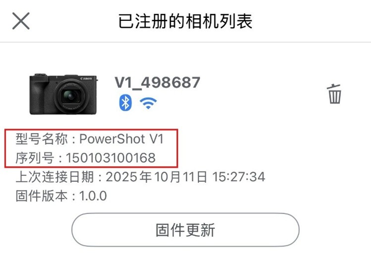 请连接相机至Camera Connect应用程序并检查产品信息。