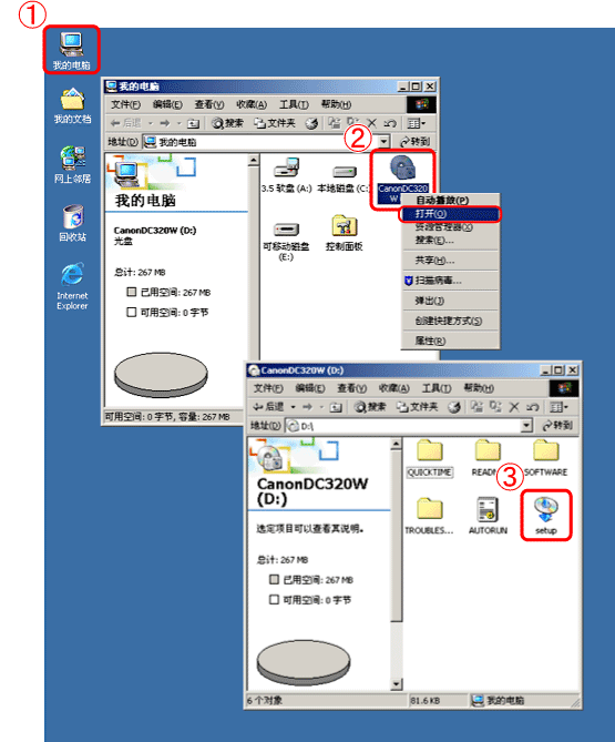 | 描述 | : 连接相机到计算机 (安装 USB 驱动程序/Windows 2000) |