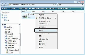 2. 右键单击本打印机的图标,然后从弹出菜单中选择 [共享]。