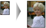 - 启用按页面大小复印功能时,可在复印原稿时自动放大或缩小以适合所选的页尺寸。 在这种情况下,在普通纸上有边距复印原稿,在照片纸上无边距复印原稿。取消按页面大小复印功能以原稿尺寸进行复印。请参见按页面大小复印。