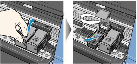 - 使用新墨盒(FINE Cartridge)进行更换。 安装已使用的墨盒(FINE Cartridge)可能会造成喷嘴阻塞。此外,使用这些墨盒,本机将无法正确提示何时更换墨盒。