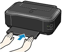 (3) 滑动纸张导片(A)以将其打开,并在后端托盘的中心以打印面朝向自己装入纸张。