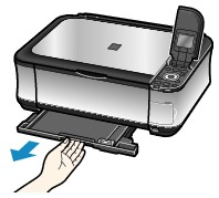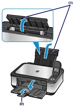(2) 轻轻地打开出纸托盘,并打开出纸托盘扩展架。