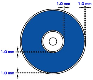 可打印DVD光盘和CD光盘的打印区域不包括距离标签内外直径1毫米的区域。