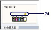检查剩余墨水量屏幕上是否显示任何符号(A)。