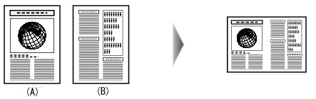 通过缩小每个图像,可以将四页原稿复印到一张纸上。 可以使用四种不同的布局。