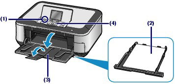 (3) 轻轻地打开出纸托盘,并打开出纸托盘扩展架。