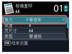 - 根据复印菜单,某些设置项无法选择。 本节描述标准复印的设置项。