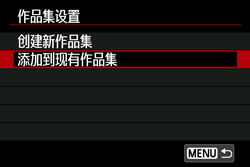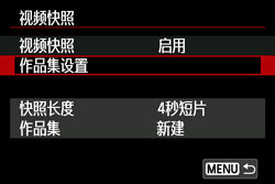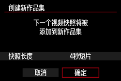 1. 在步骤 5“设置视频快照拍摄持续时间”中,选择 [添加到现有作品集],然后按 <
