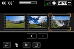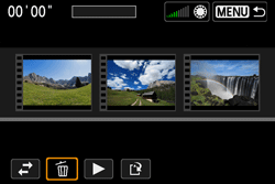 3. 按下 <主拨盘> 以便选择要删除的视频快照,然后按下 <