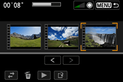 3. 按下 <主拨盘> 以便选择要移动的视频快照,然后按下 <