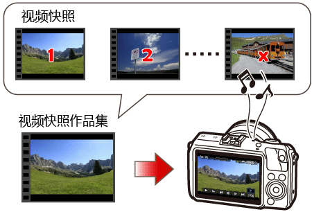 本相机附带可创建简短的短片剪辑的称作“视频快照”的功能。
