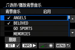 3. 在到达了上面的步骤 2 时,按下 <主拨盘> 选择背景音乐项,然后按下 <