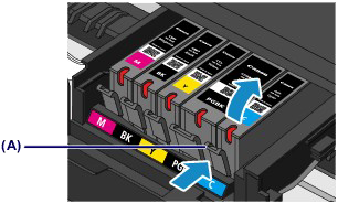 - 请勿同时取出两个或更多墨水盒。 更换两个或更多墨水盒时,请务必逐个更换。