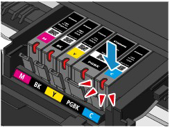 - 使用新墨水盒进行更换。 安装使用过的墨水盒可能会造成喷嘴堵塞。 此外,使用这样的墨水盒,本机将无法正确提示何时更换墨水盒。
