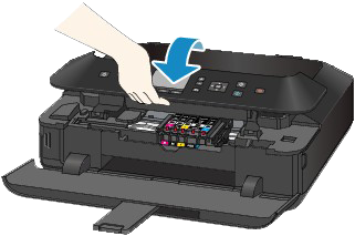 - 请勿捏着打印头固定器强行将其停止或移动。 请勿触摸打印头固定器直至其完全停止。