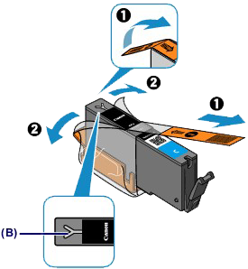 - 如果橙色胶带仍留在Y形气孔(B)上,墨水可能会溅出或本机可能无法正确打印。
