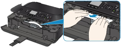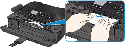 - 如果纸张撕裂并无法从出纸槽中取出卡纸,则从本机内部取出卡纸。