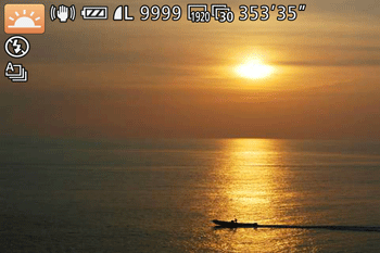 - 如果半按快门按钮时无法获得足够的曝光,快门速度和光圈值将以橙色显示。在这种情况下,尝试调整 ISO 感光度或打开闪光灯(如果被摄体较暗)可能会得到足够的曝光。