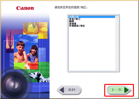 10. 选择您所在的国家/地区,然后单击 [下一步]。