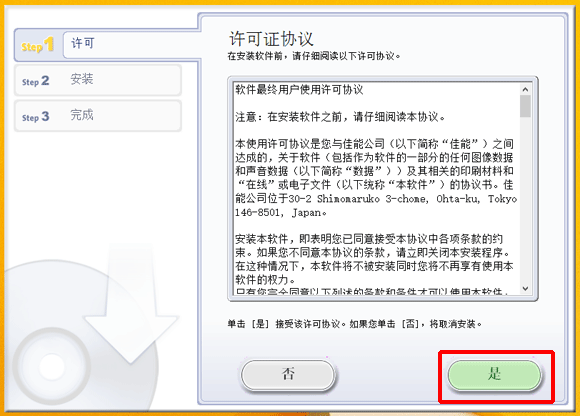 12. 请仔细阅读许可协议;如果同意其中的条款,请单击 [是]。
