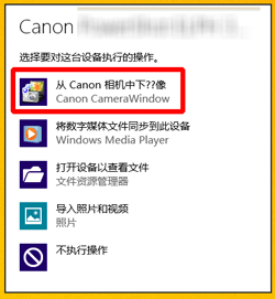 在安装有 Windows 8.1 的计算机上,可以将 CameraWindow 设为在连接了佳能相机后自动启动。