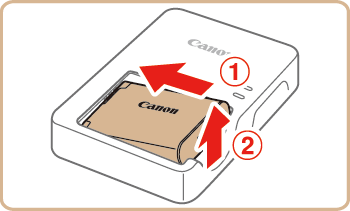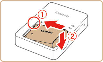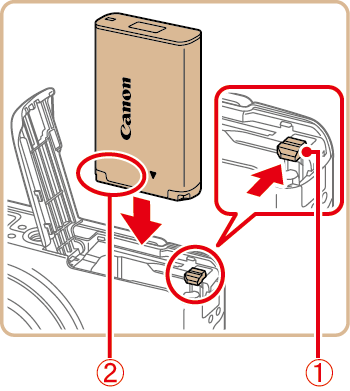 电池锁时,按照图示所示插入电池,并且向里推直至其咔嗒一声锁定到位。 - 如果朝错误方向插入电池,电池将不能锁定到正确位置。请始终确保电池朝着正确的方向并且在插入时锁定。